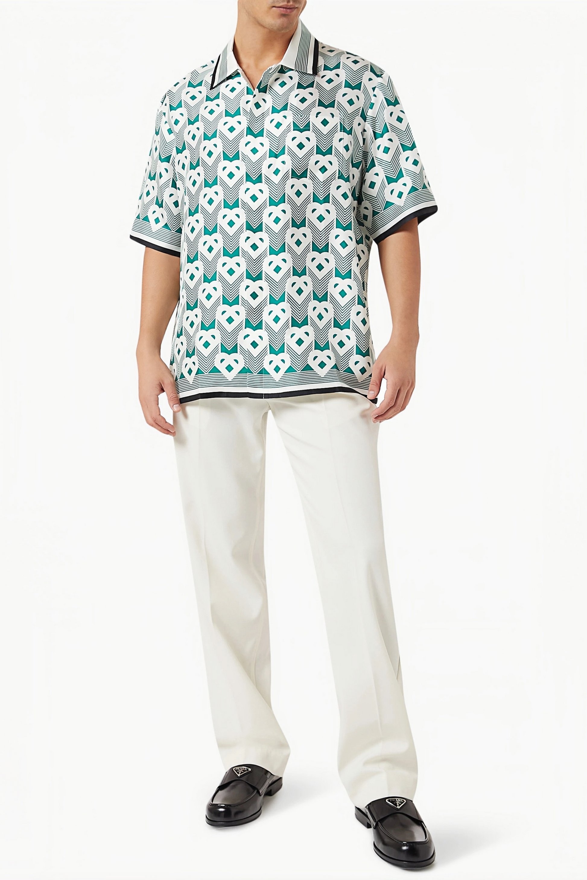 قميص قصير الأكمام هندسي باللون الأخضر من آرون