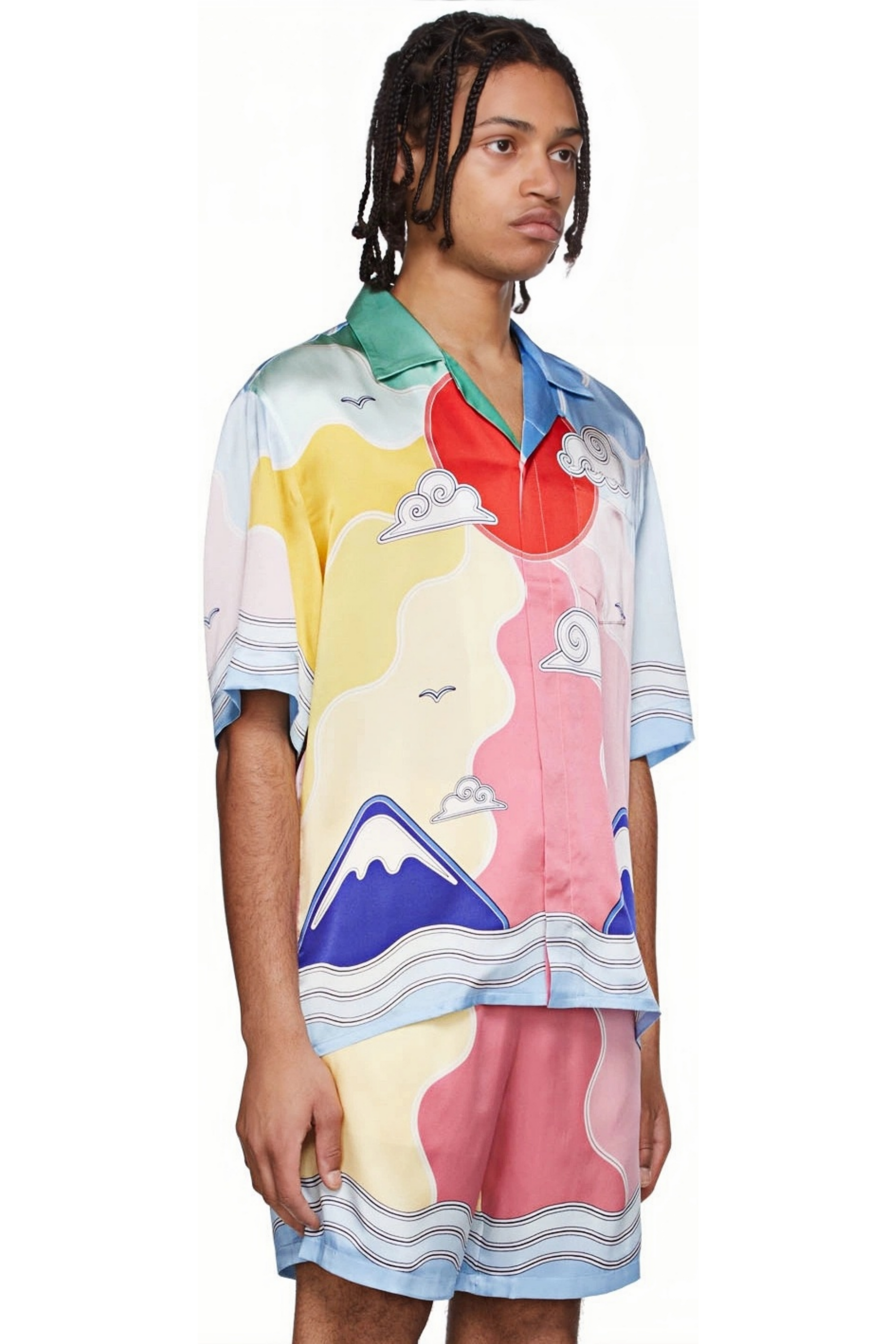 قميص أندريه وردي متعدد الألوان بأكمام قصيرة وموديل موجة جبلية