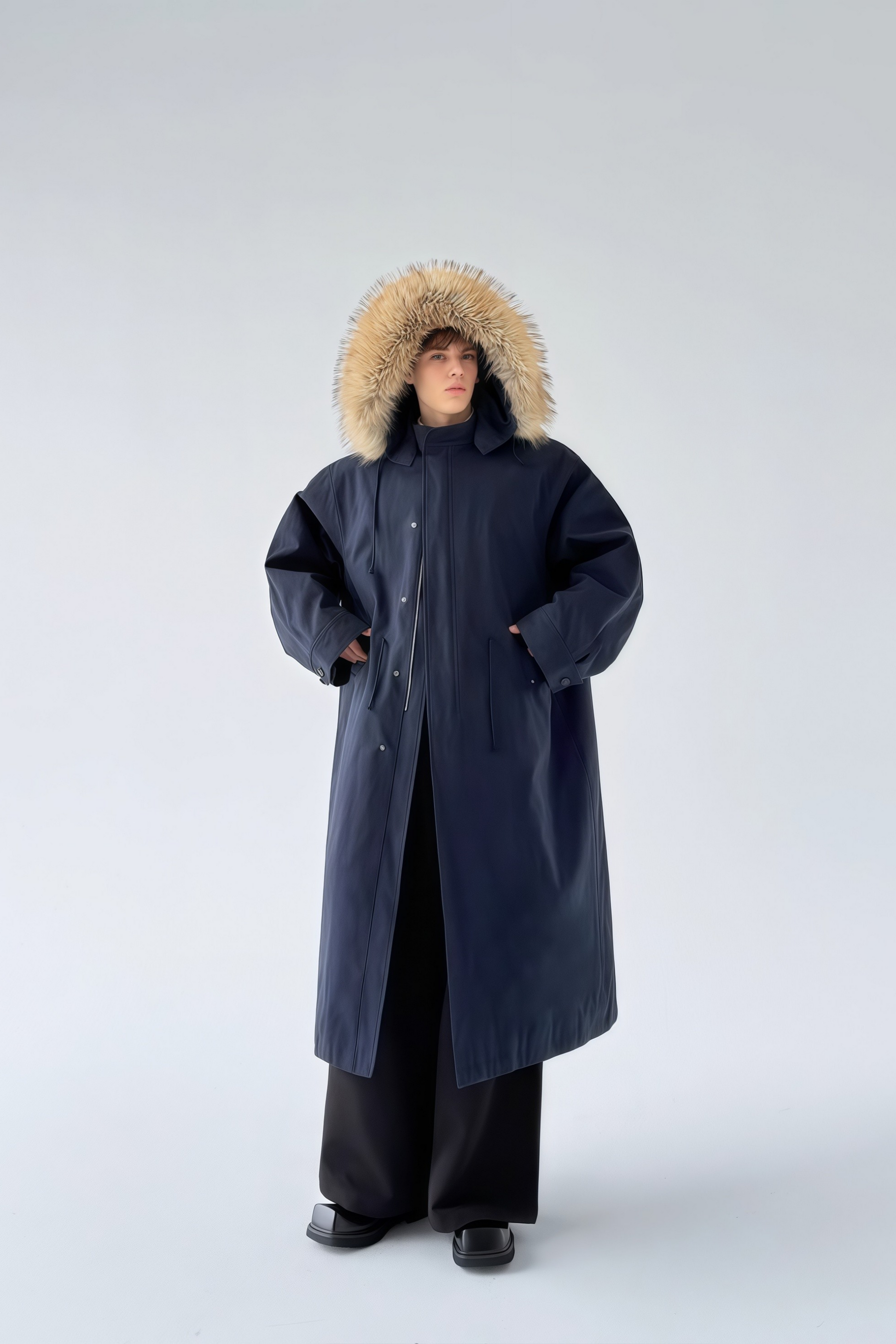 معطف طويل من Armand بزخارف من الفرو الصناعي باللون الأزرق