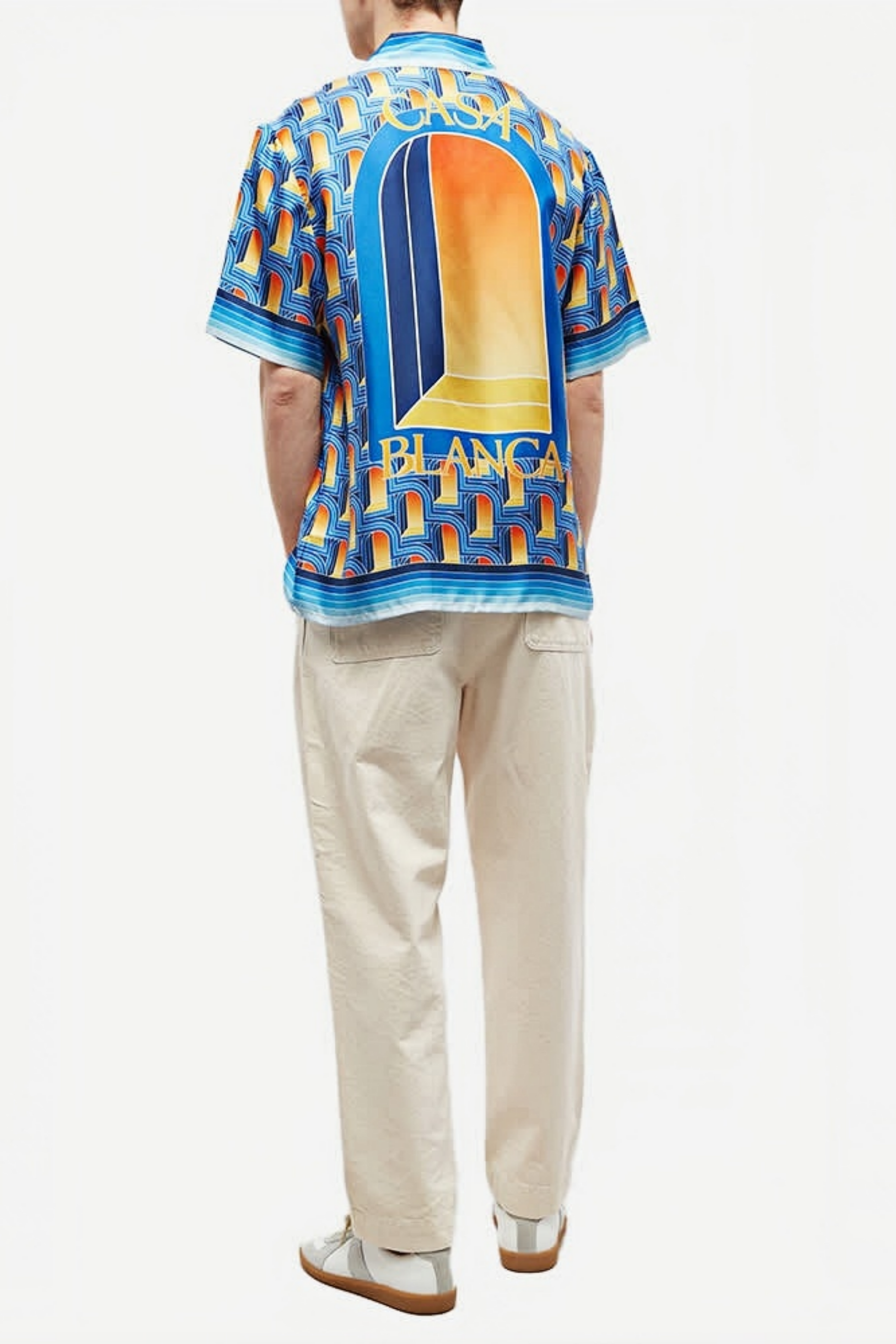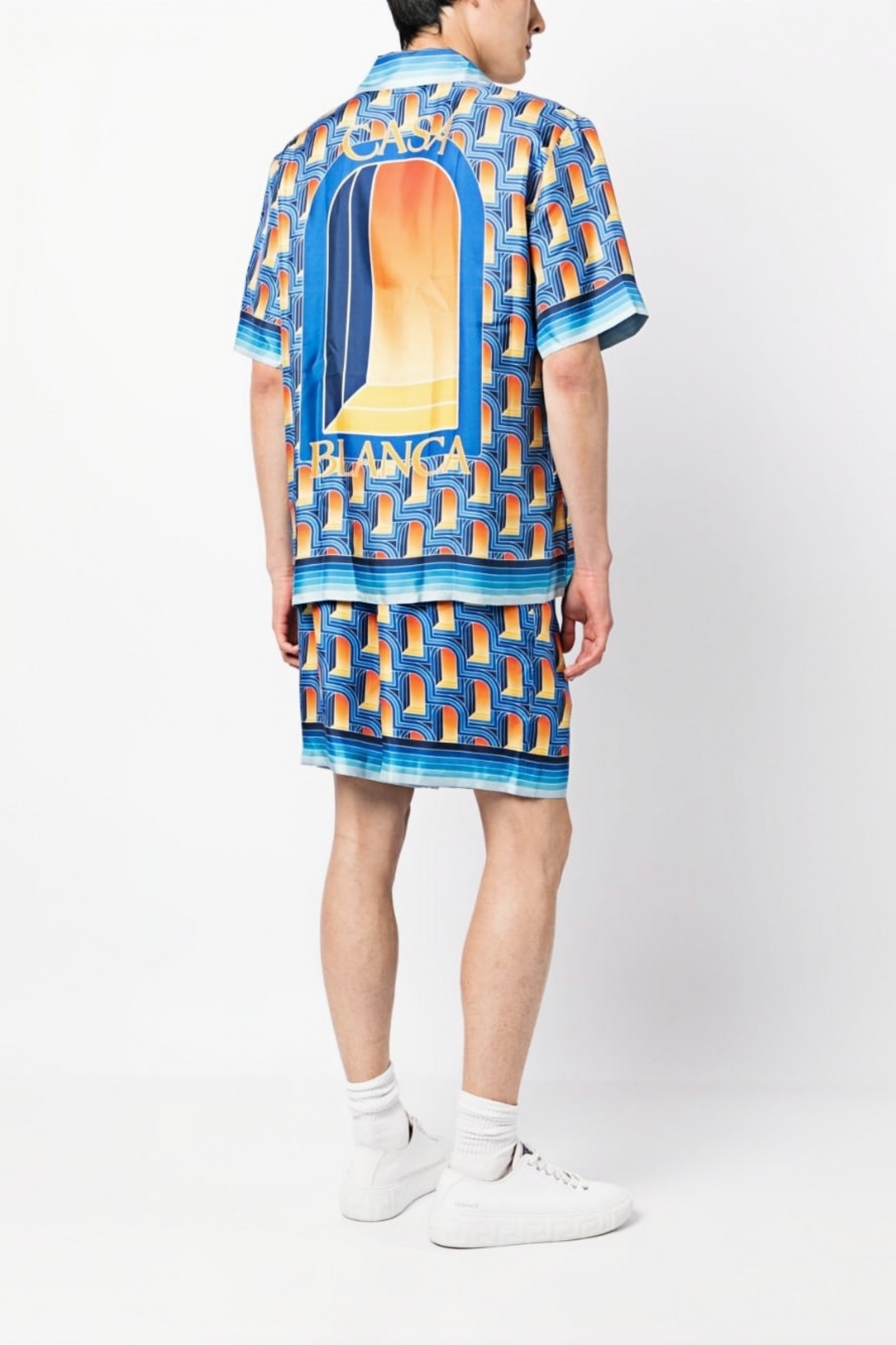 قميص قصير الأكمام بنقشة هندسية زرقاء من Basile