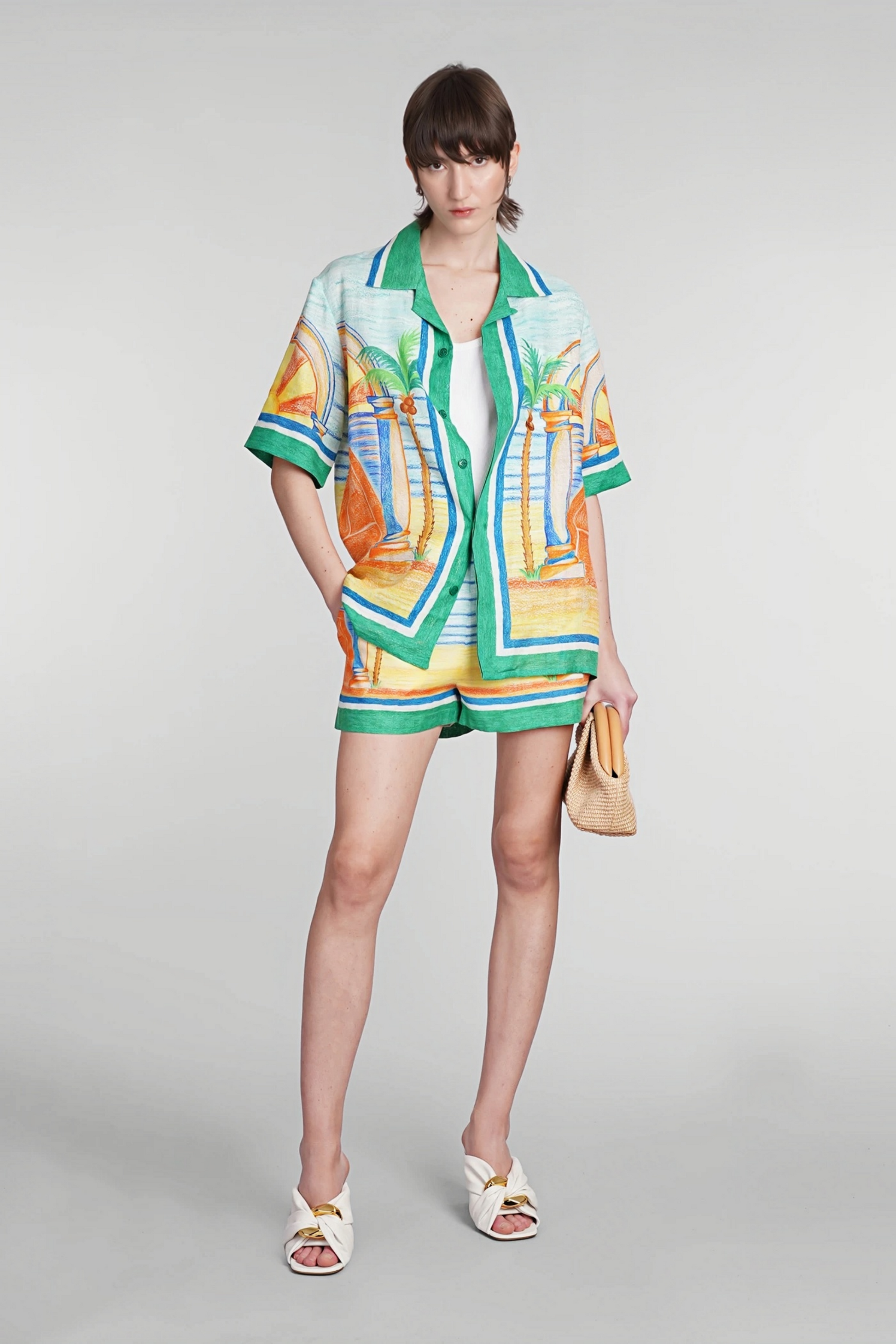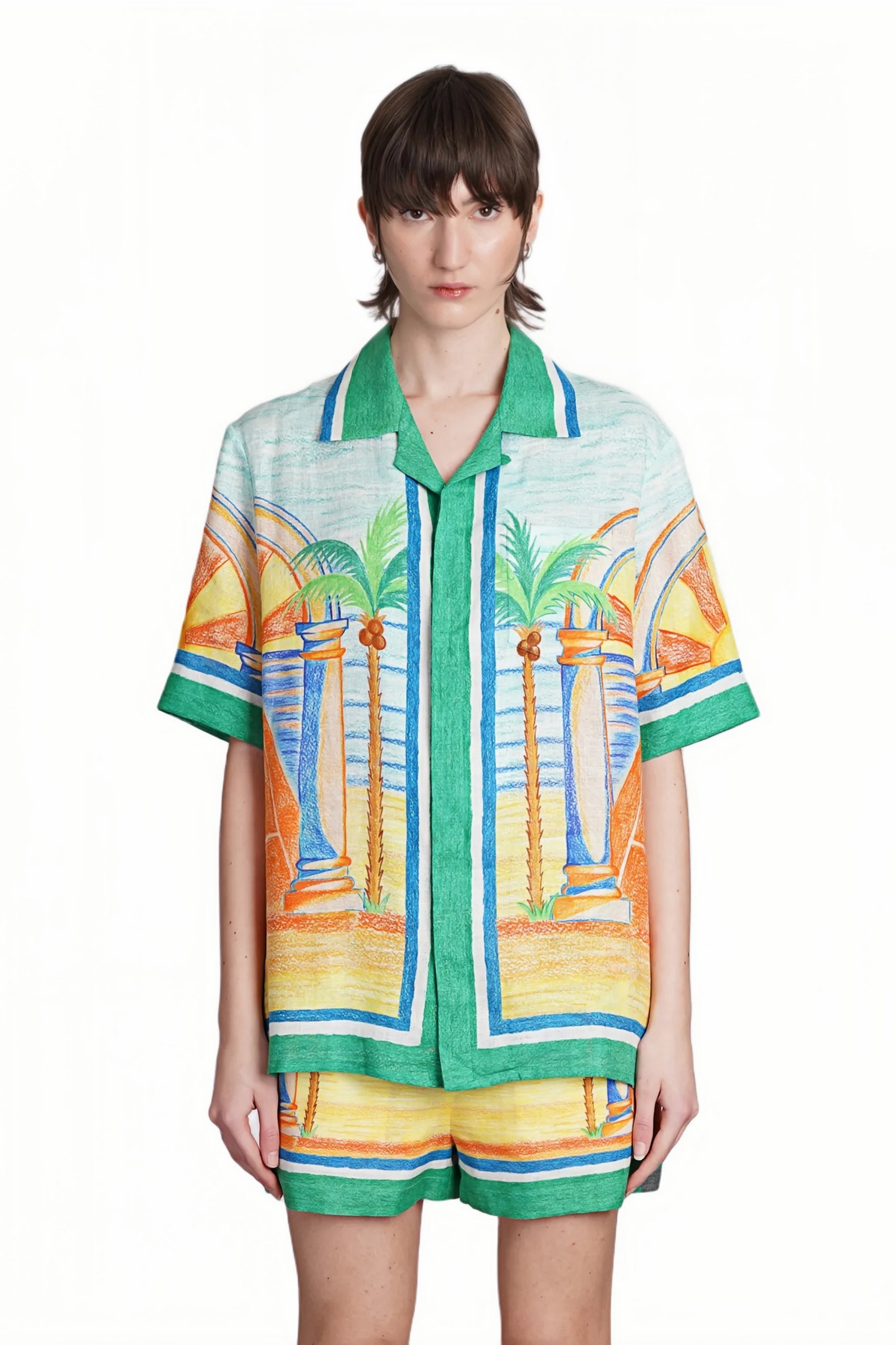 Christopher green tropical print short-sleeve shirt