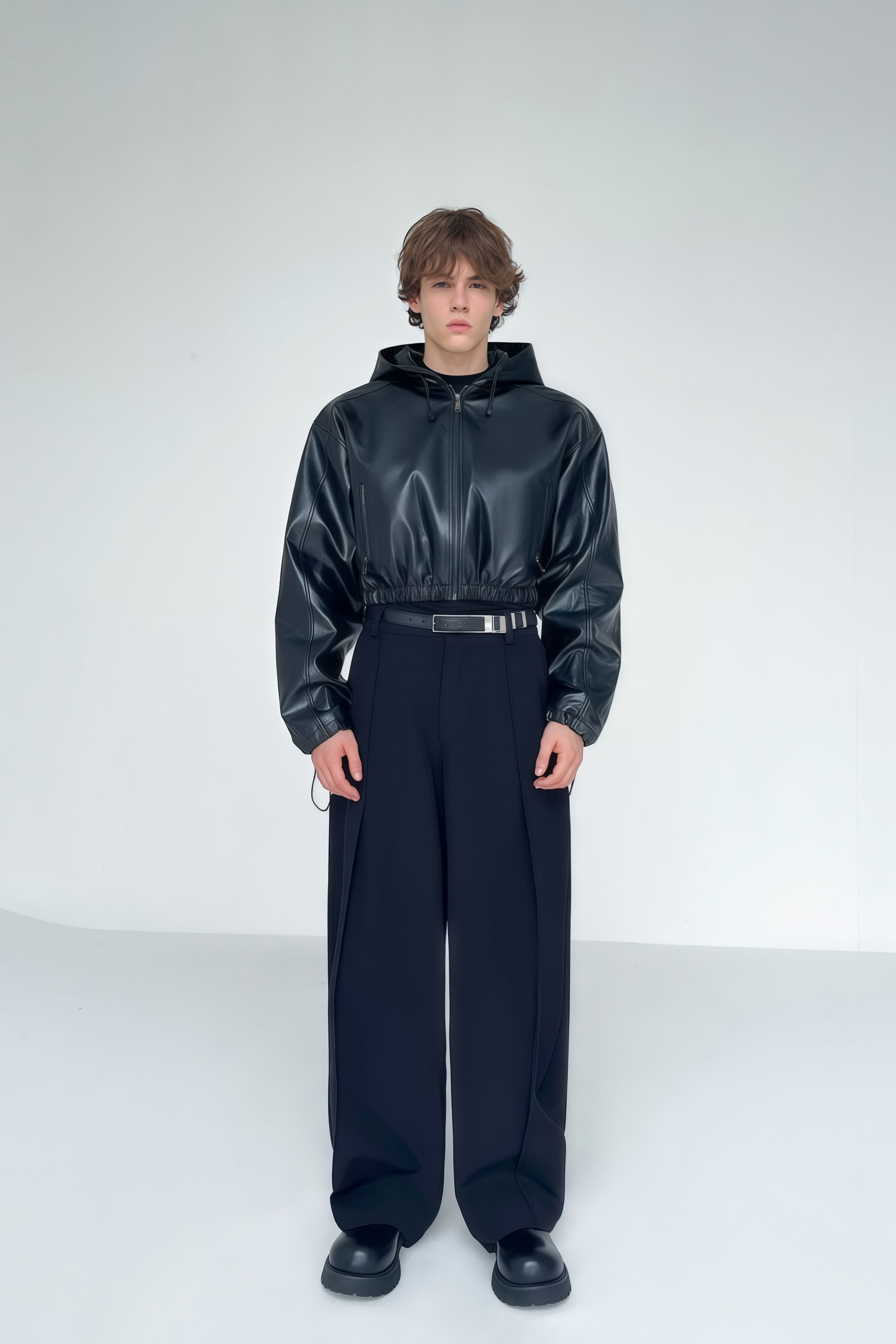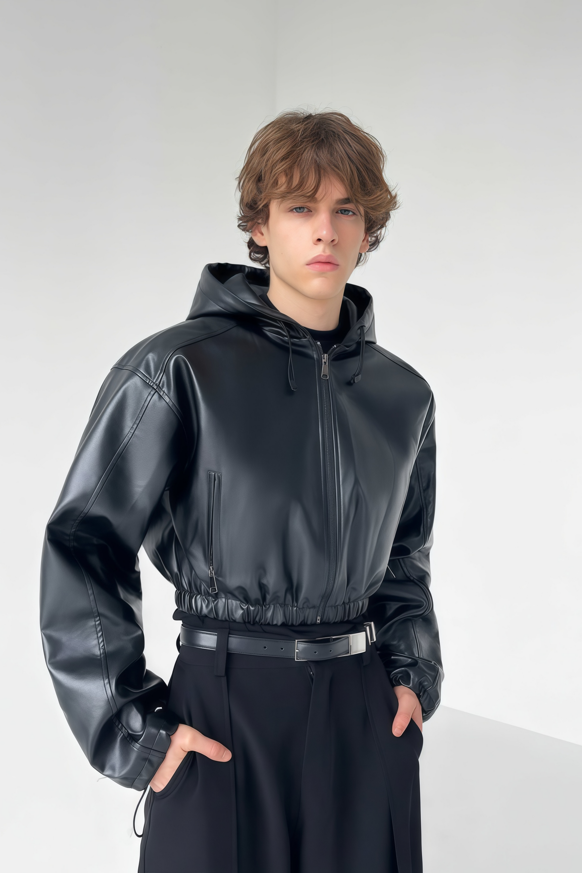 Drake black cropped leather jacket