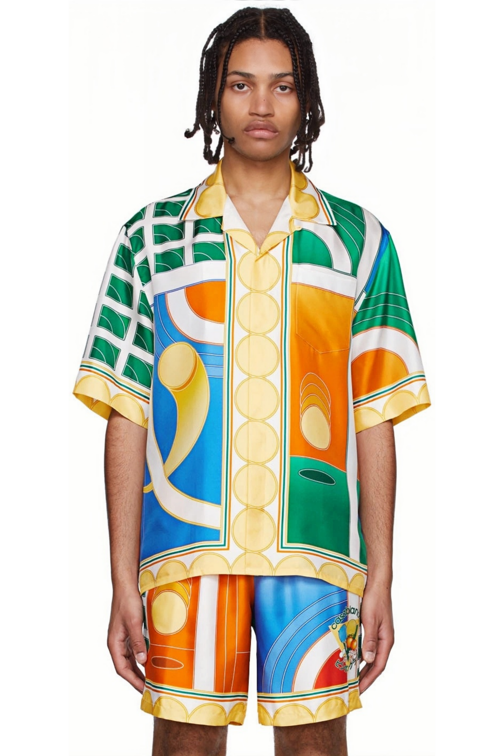 Édouard yellow color block satin short-sleeve shirt
