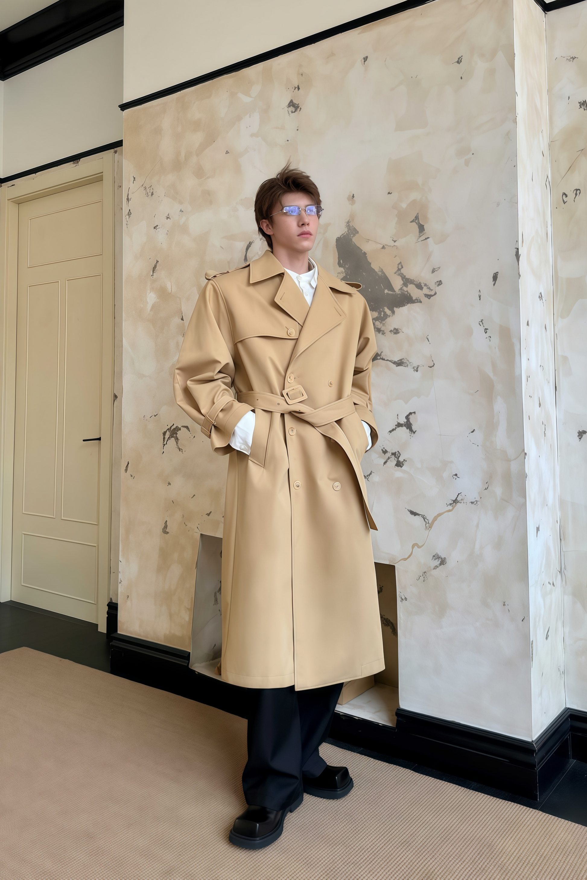 Jean khaki double-breasted trench coat