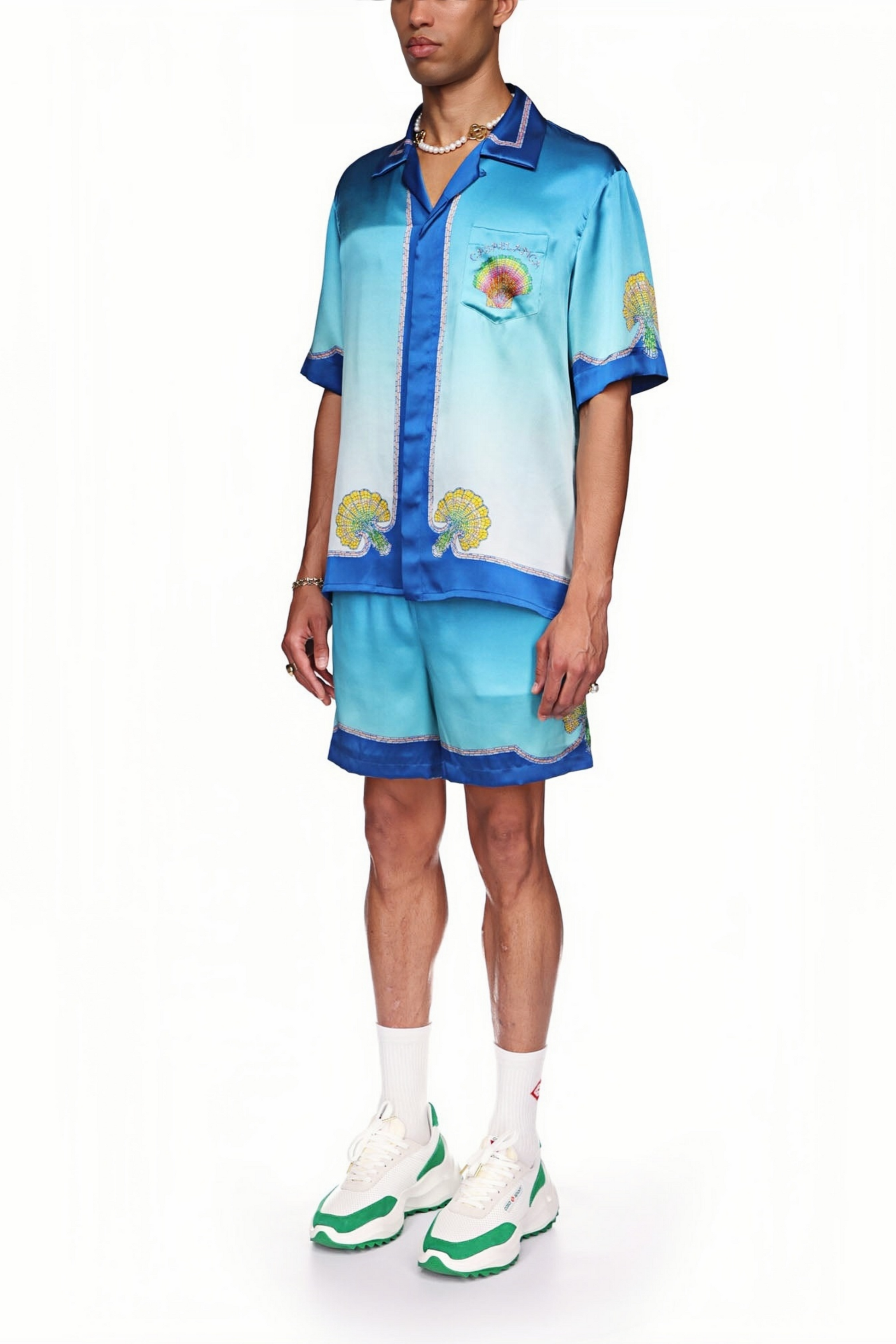 Leo blue gradient floral short-sleeve shirt