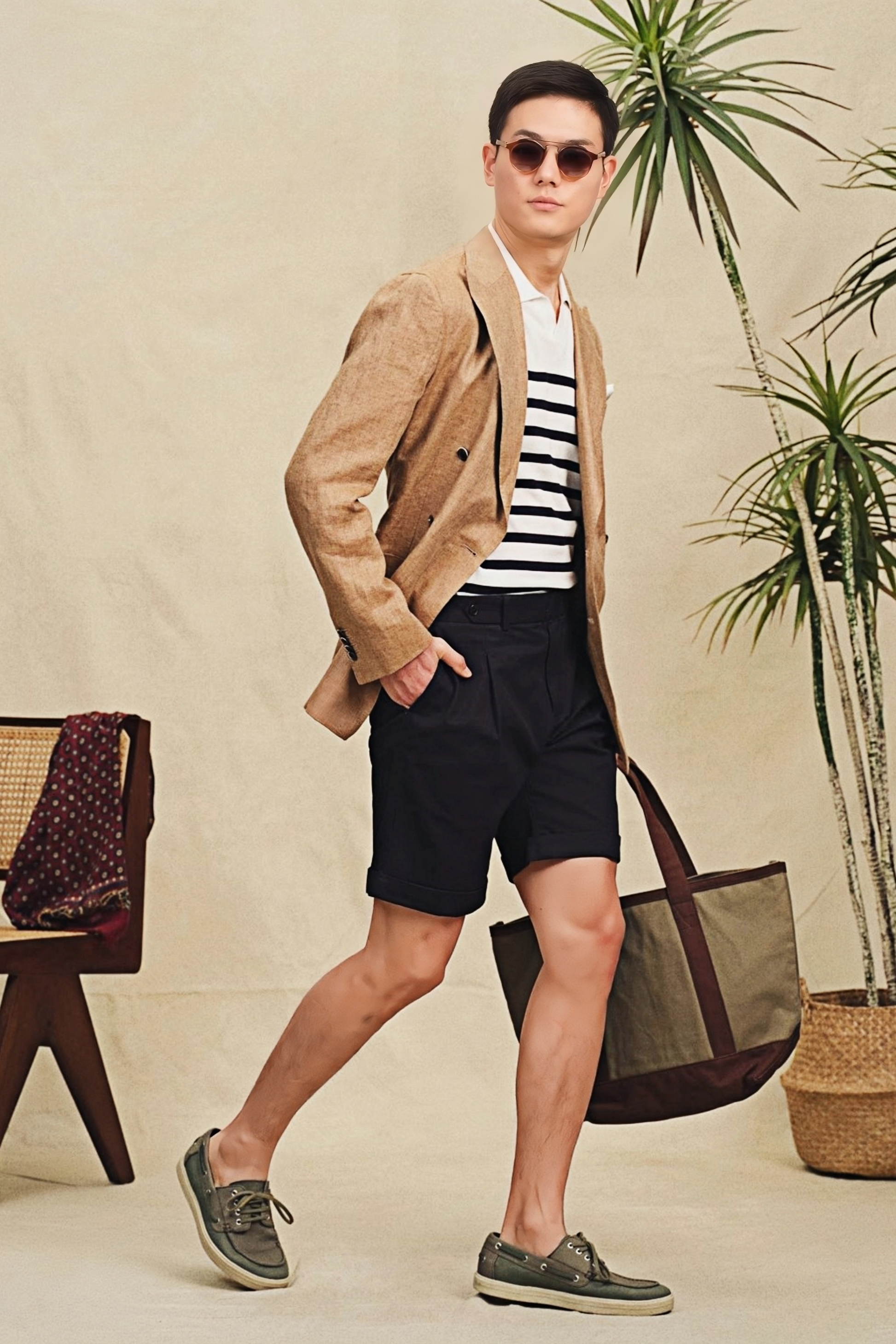 Leo navy-blue straight-cut shorts