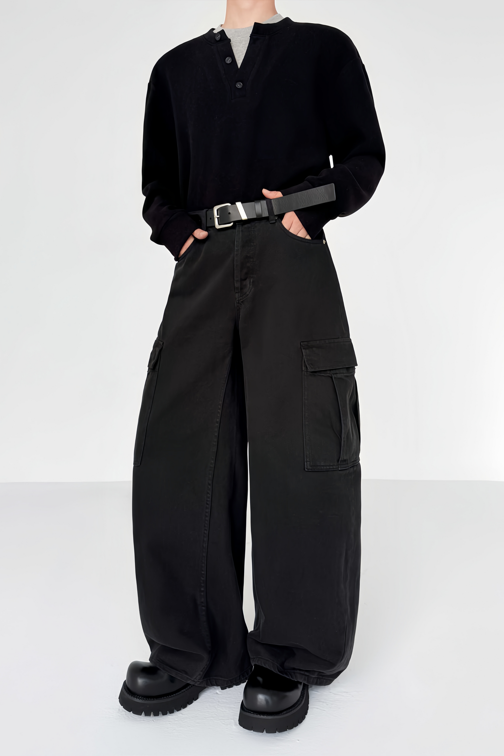 Lucien black large-pocket trousers