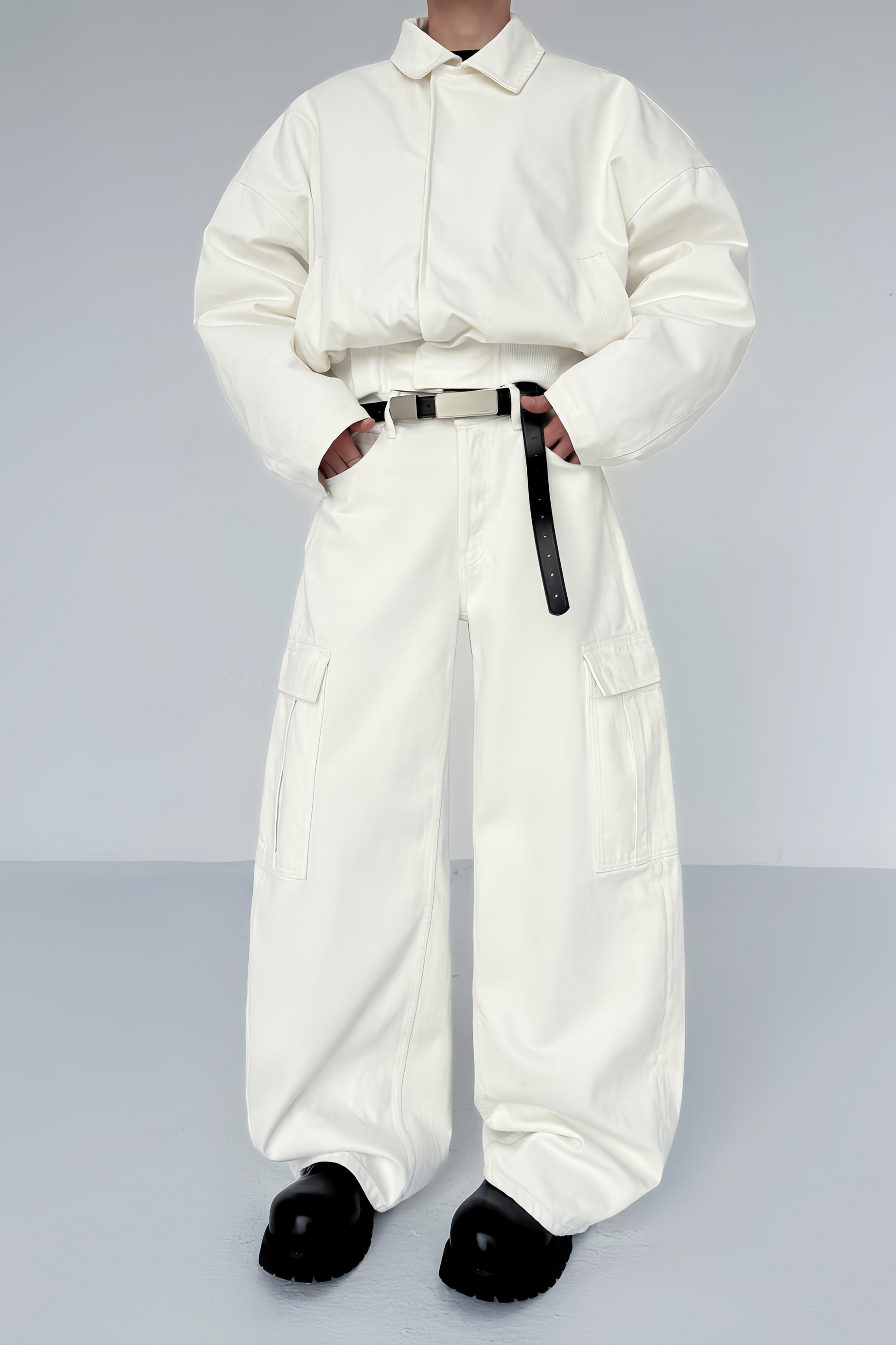 Lucien white large-pocket trousers