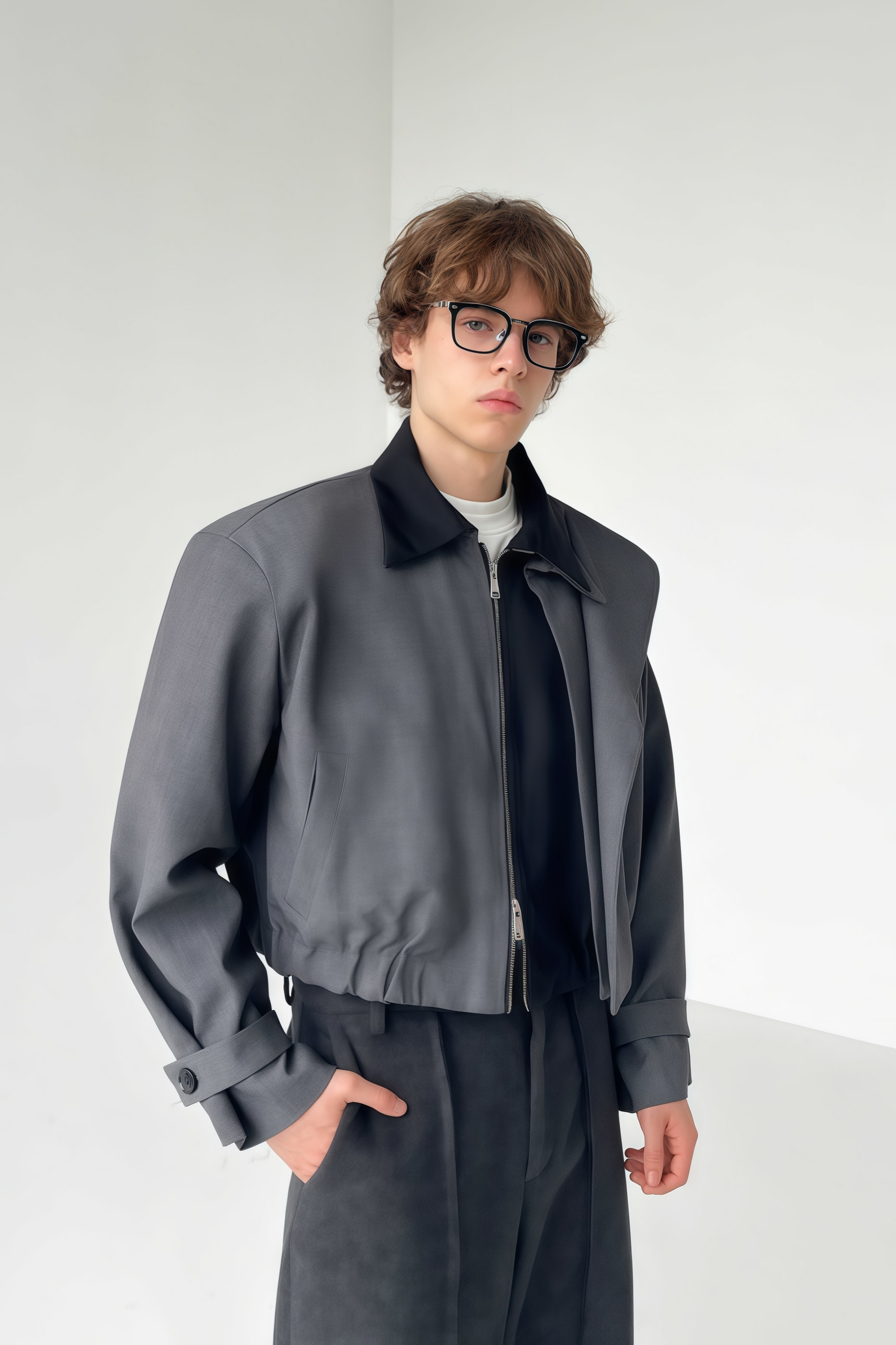 • Front two-way zip fastening