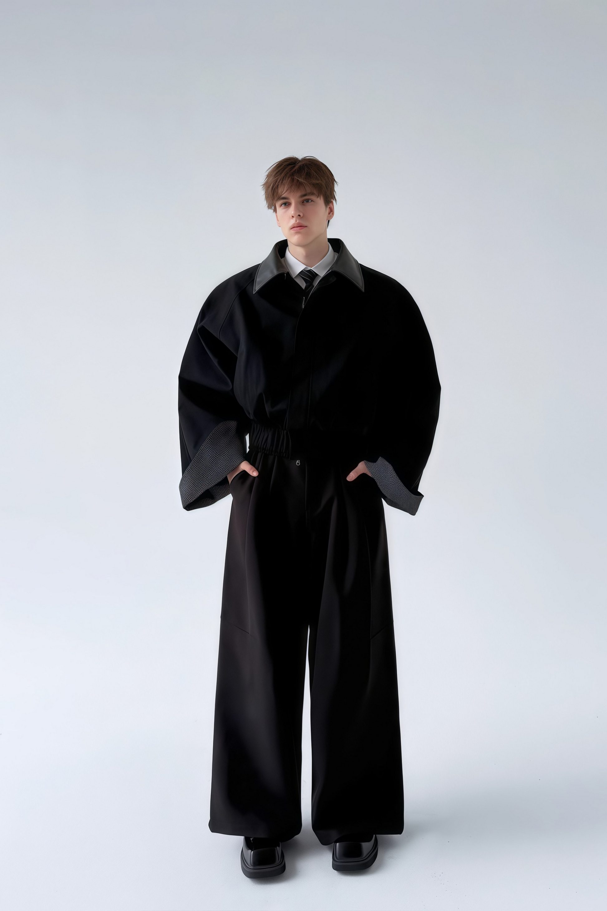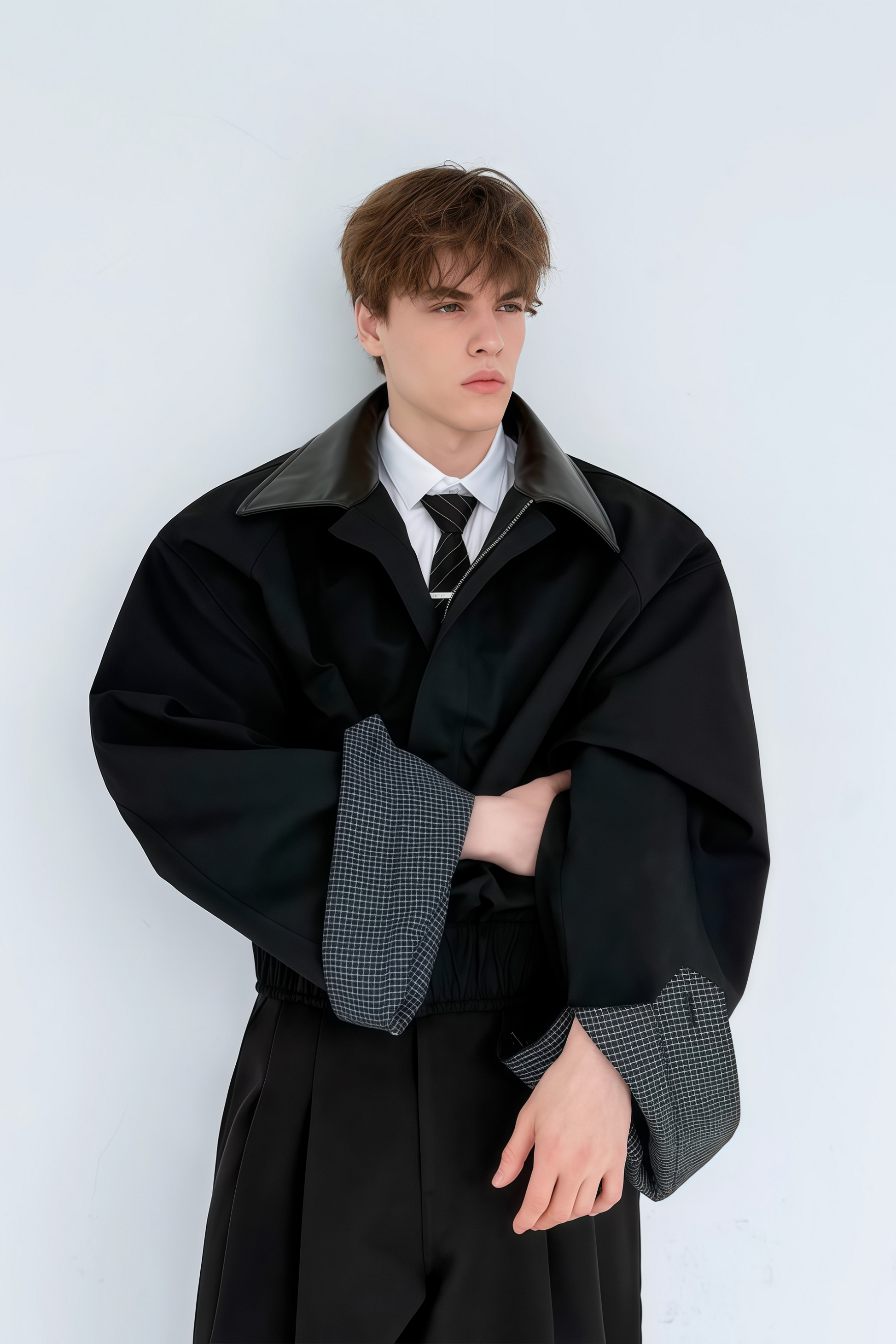 Ragnar black patchwork-collar large-cuff cropped jacket