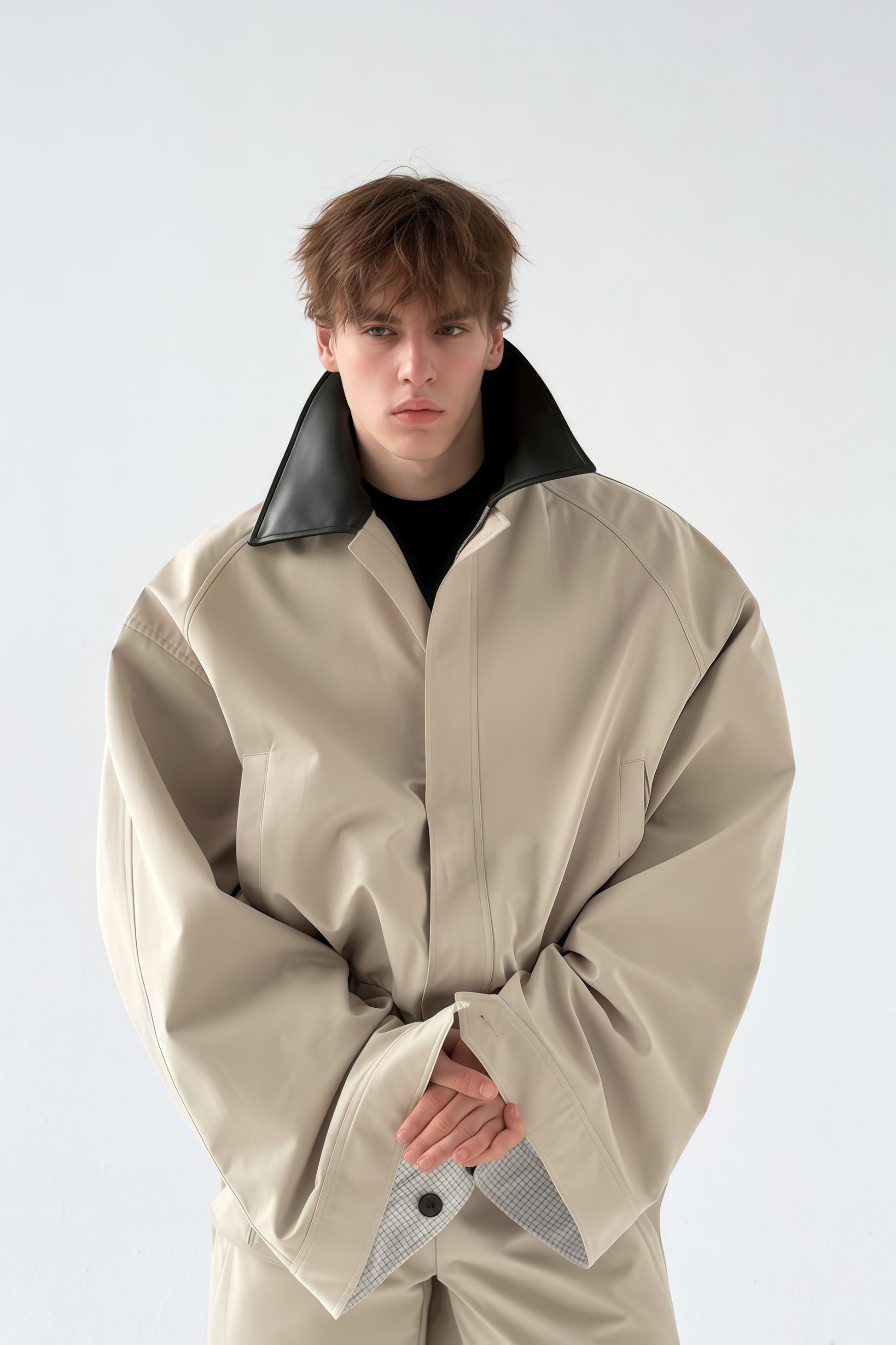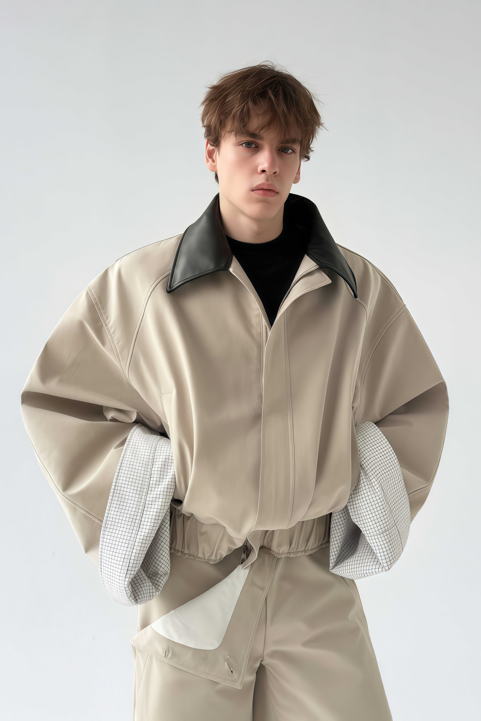 Ragnar khaki patchwork-collar large-cuff cropped jacket