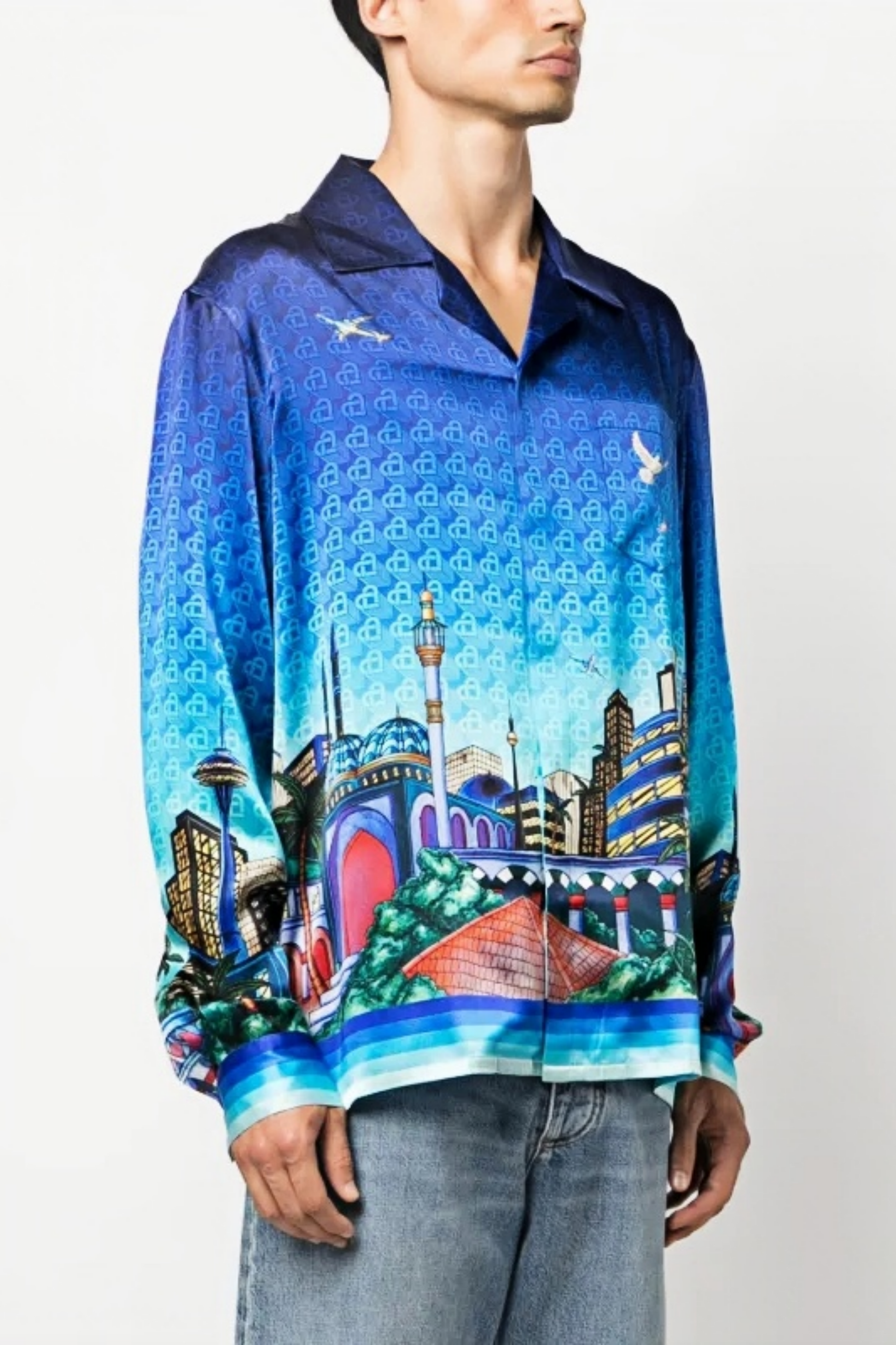 Sebastian blue cityscape long-sleeve shirt