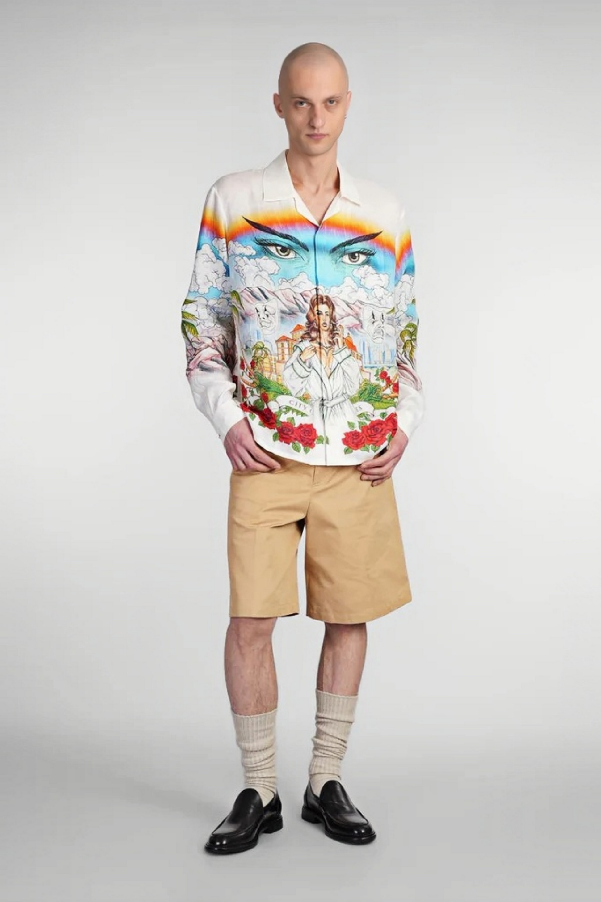 Steve white graphic print button up shirt