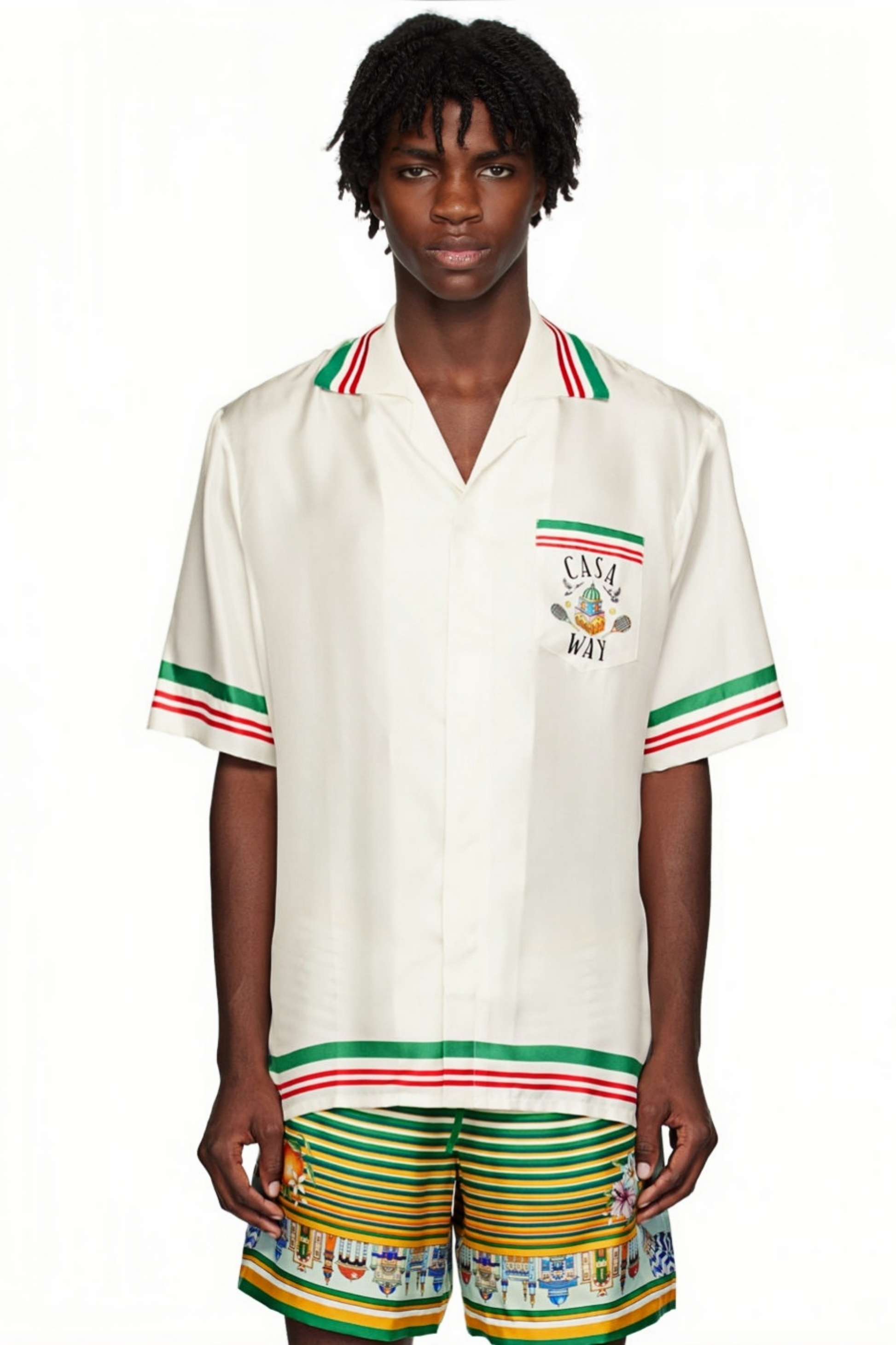 Théo white striped varsity short-sleeve shirt