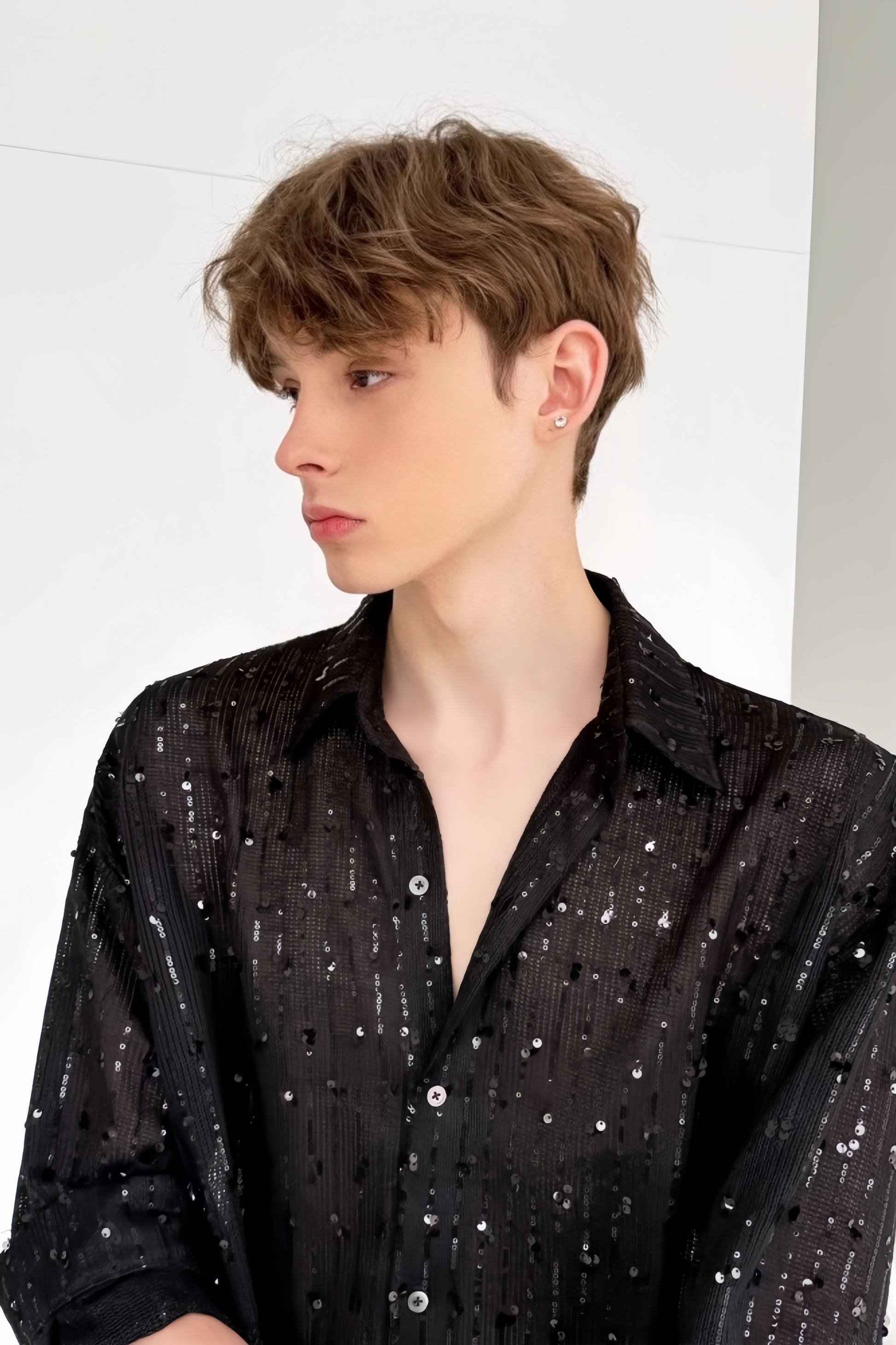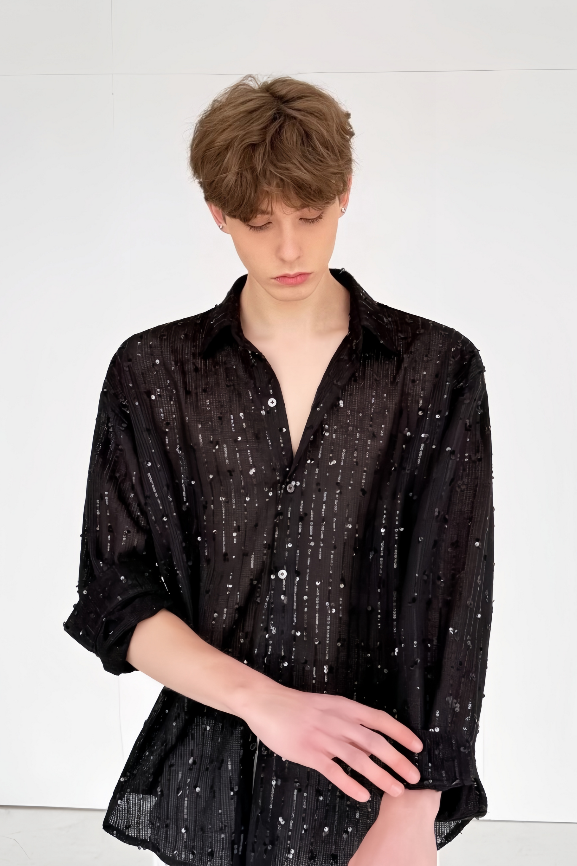 يوسف بلاك بلوزة مزينة بالترتر وبدلة قميص