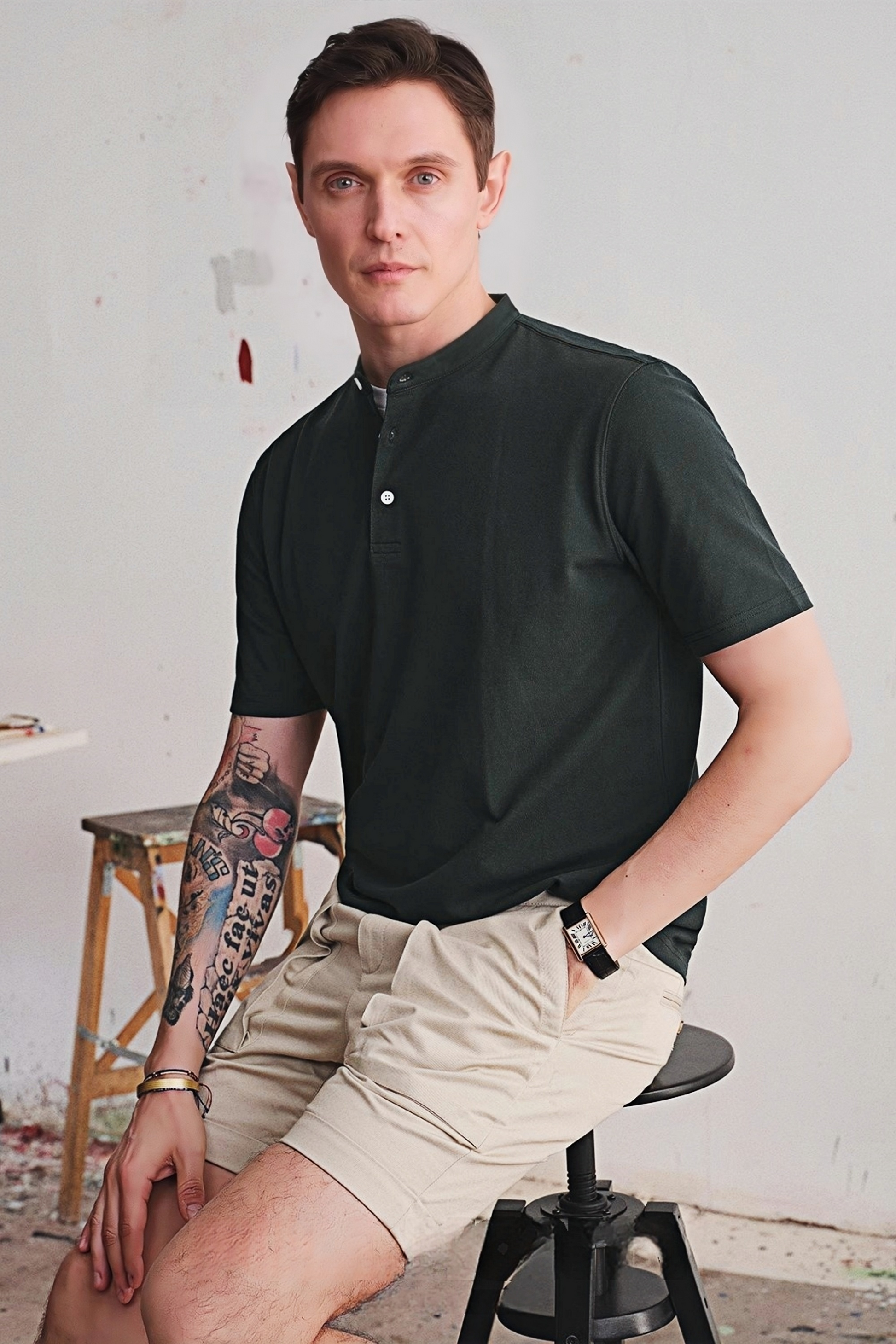 قميص هنلي أخضر من Yves